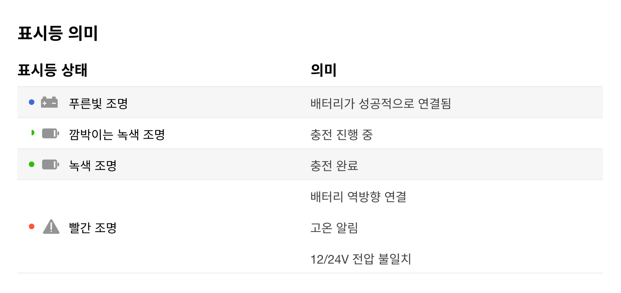 표시등을 통해 자동차 배터리의 충전 상태를 종합적으로 확인할 수 있습니다.
