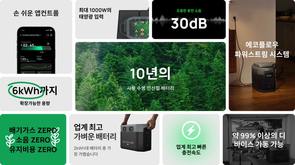 델타 2 맥스의 업그레이드된 기술로 최대 1000W의 태양광 충전과 AC를 결합하여 세계 최고의 충전 속도를 제공합니다.
