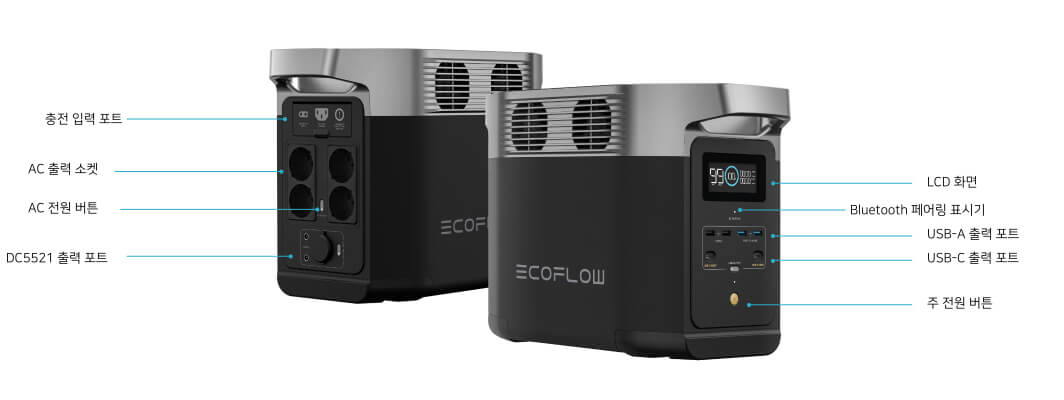 AC 출력 포트: 합계 1,800W(서지 2,700W), X-Boost 기능 사용 시 최대 2400W